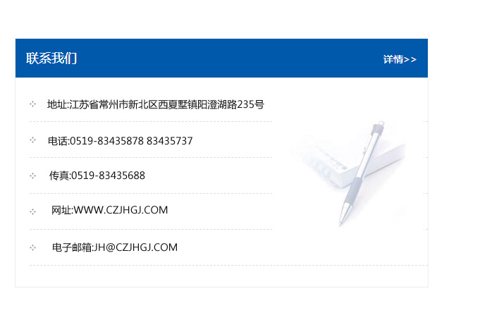 傳真:0519-83435688    郵編:213135    網址:WWW.czjhgj_com.huayabaihuo.com    電子郵箱:JH@czjhgj_com.huayabaihuo.com